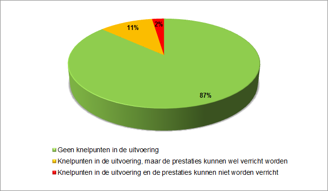 Er zijn dit jaar weer goede stappen gezet bij de realisatie van de in de Begroting 2017 gepresenteerde plannen. Van de 83 speerpunten ligt de uitvoering van 72 speerpunten (87%) helemaal op schema. Daarnaast is er bij 9 speerpunten (11%) sprake van knelpunten in de uitvoering, maar kunnen de prestaties wel geleverd worden. Slechts bij 2 speerpunten (2%) worden de prestaties niet gehaald. Kortom, in 98% van de gevallen worden de afgesproken speerpunten gerealiseerd.